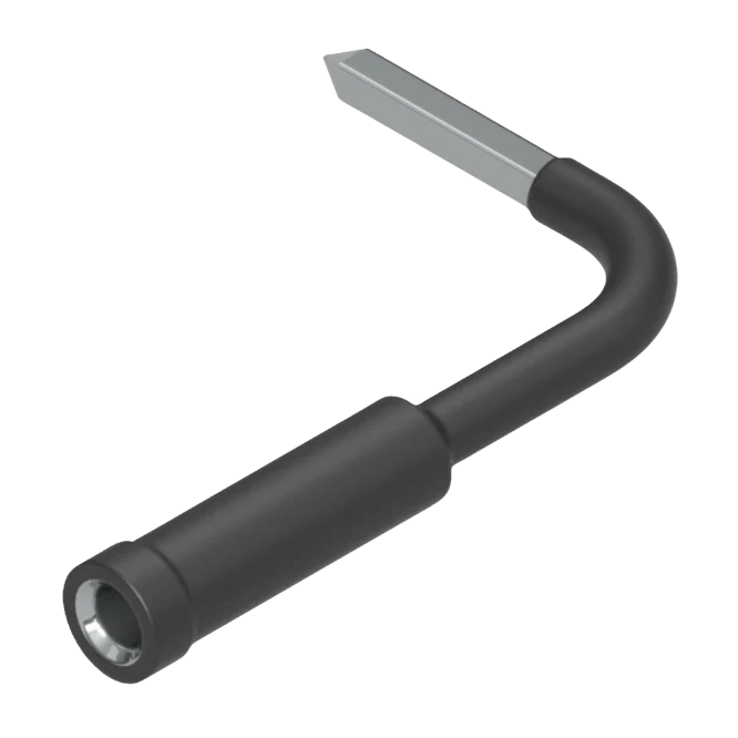 This 90° L-In adapter converts a connector to a 0.8 mm socket, enabling precise connections in tight or angled spaces. Designed from durable materials, it ensures reliable conductivity and consistent performance. Its compact L-shaped design allows easy installation and maneuverability, making it ideal for soldering and testing applications where space is limited. Compatible with standard soldering and testing tools.