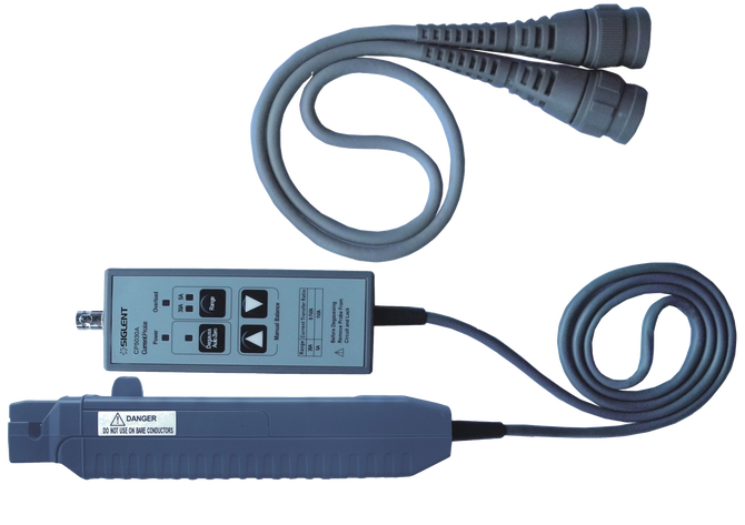 The SIGLENT CP5030A is a high-performance AC/DC current probe designed for precise current waveform capture and measurement. With a 100 MHz bandwidth and a rise time of ≤3.5 ns, it ensures fast and accurate signal response. It supports dual current ranges of 5 A (1X) and 30 A (10X), providing versatility for low- and high-current diagnostics. The probe maintains excellent accuracy at ±1% ±1 mA/10 mA depending on the selected range, and a measurement resolution down to 1 mA enables detailed analysis of current signals. Engineered with a maximum conductor diameter of 20 mm, the CP5030A accommodates a broad array of test applications. Its 30 Arms effective current handling and peak measurement up to 50 A make it ideal for high-speed switching, inrush current, and power integrity measurements. Designed to work seamlessly with standard oscilloscopes via BNC, and powered by a DC 12 V adapter, the CP5030A delivers robust and reliable current probing in lab and field settings.