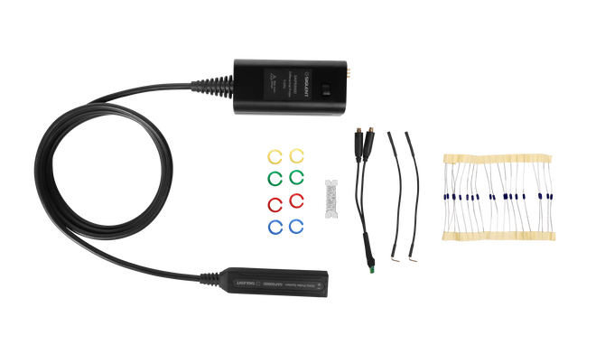 The Siglent SAP5000D is a high-performance 5 GHz differential active probe designed for precise high-speed signal measurements. With a differential input resistance of 20 kΩ and low input capacitance of 400 fF, it ensures minimal circuit loading and accurate signal capture. The probe features a 10:1 attenuation ratio, ±2.5 V input dynamic range, and ±12 V offset range, making it ideal for advanced debugging and validation tasks. Compatible with Siglent oscilloscopes supporting the SAPBus interface, the SAP5000D integrates seamlessly without the need for external power sources, enhancing measurement efficiency in demanding applications.