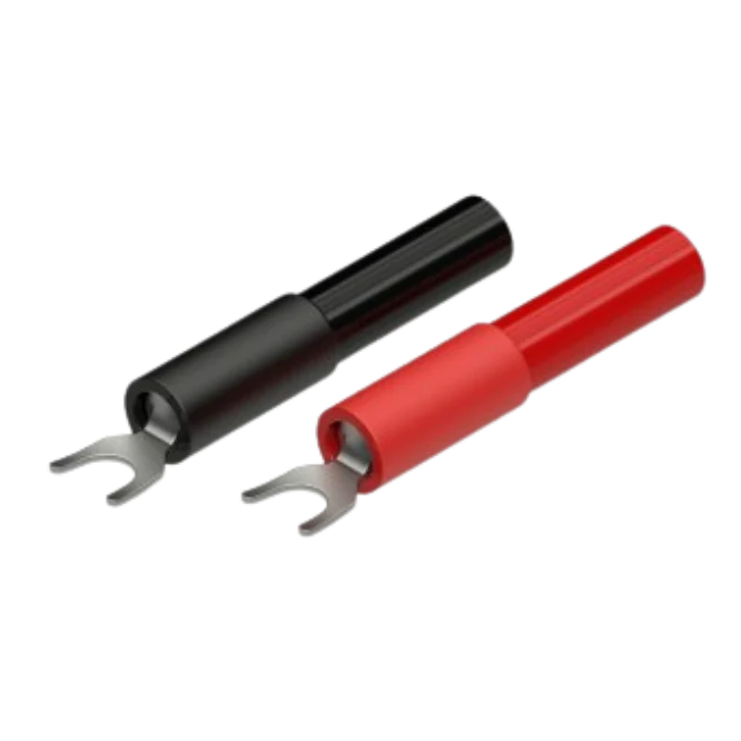 סט של 2 טרמינלים מסוג Spade עם פתיחת מזלג 4.5 מ"מ מספק פתרון בטוח ואמין לחיבור חוטים לטרמינלים או פוסטים עם ברגים במעגלים חשמליים.